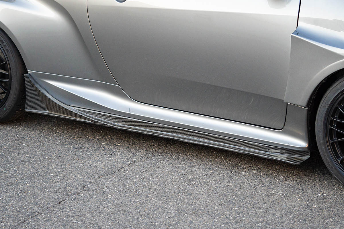 フロント側にはタイヤハウスからの空気を積極的に排出する形状を採用しリフトを抑制。リア側はディフレクター形状により、リアタイヤに直接当たる空気を抑制しドラッグを抑えます。